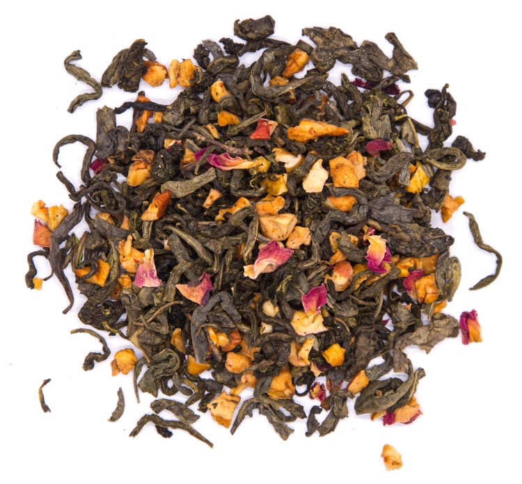 китайский среднелистовой зеленый чай, бирюзовый чай Те Гуань Инь, яблоко, розовые лепестки и пищевой ароматизатор.